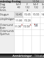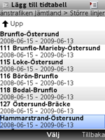 Använd "Tillbaka" för att stega fram till vyn "Tidtabeller".